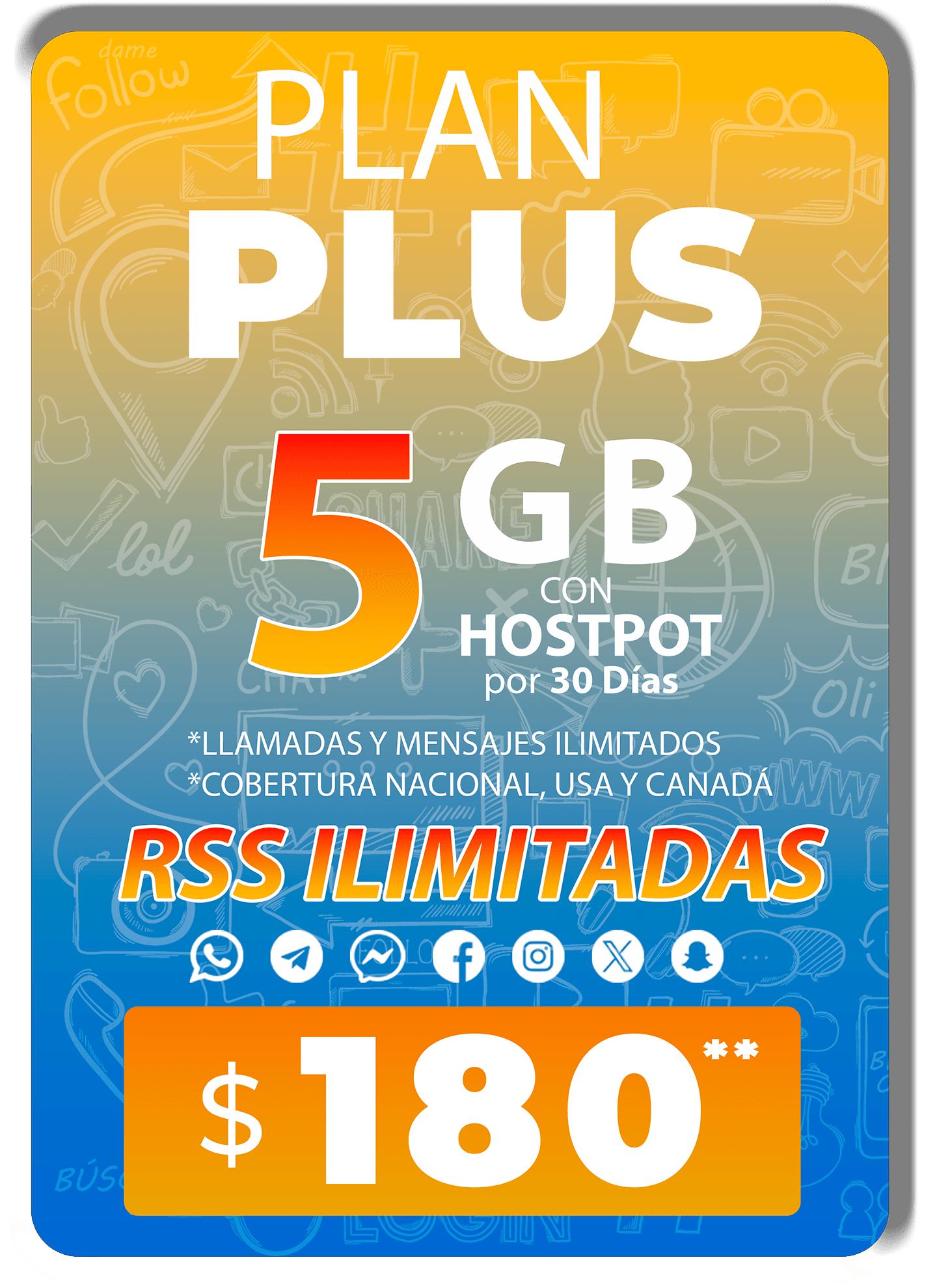 • Redes sociales ilimitadas: WhatsApp, Telegram, Messenger, Facebook, Instagram,
